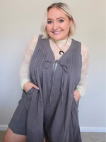 Comfy, carefree, and totally cool—this denim V Neck Romper was made for your off-duty moments. With a slouchy silhouette, tie-front waist, and flowy pleats, it balances playful femininity with functional pockets and effortless one-piece styling. Whether you’re lounging, layering, or stepping out, it’s a go-to that looks good and feels good.