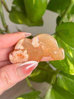 These unique cloud carvings beautifully merge the fiery motivation of Carnelian with the gentle blooming energy of Flower Agate. Swirls of warm oranges and soft pink-beige tones blend into one-of-a-kind patterns that energize and nurture your spirit all at once.