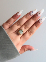 Earthy and bold with a drop of ancient wisdom. This adjustable teardrop ring features a polished piece of mookite jasper, a stone known for its grounding and decision-making energy. The crescent moon detail on the band adds a celestial touch—reminding you to stay centered while navigating new paths. Each ring is prong-set and unique in its natural marbling, with tones that range from ochre gold to rich crimson.